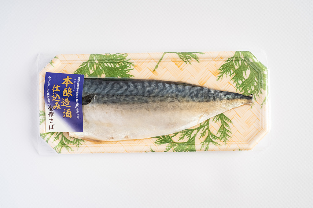 トレーに乗せた半身をフィルムと真空密着させたハイパックシリーズ。鮮度感があって見栄えも良く、冷凍ケースでもひときわ目立ちます。