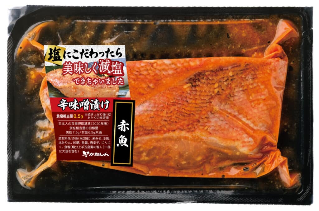 カネシンの味噌漬けの中でも人気の高い魚種4種をこだわり製法で塩分カットに成功。魚の味がしっかり感じられる自信作です。